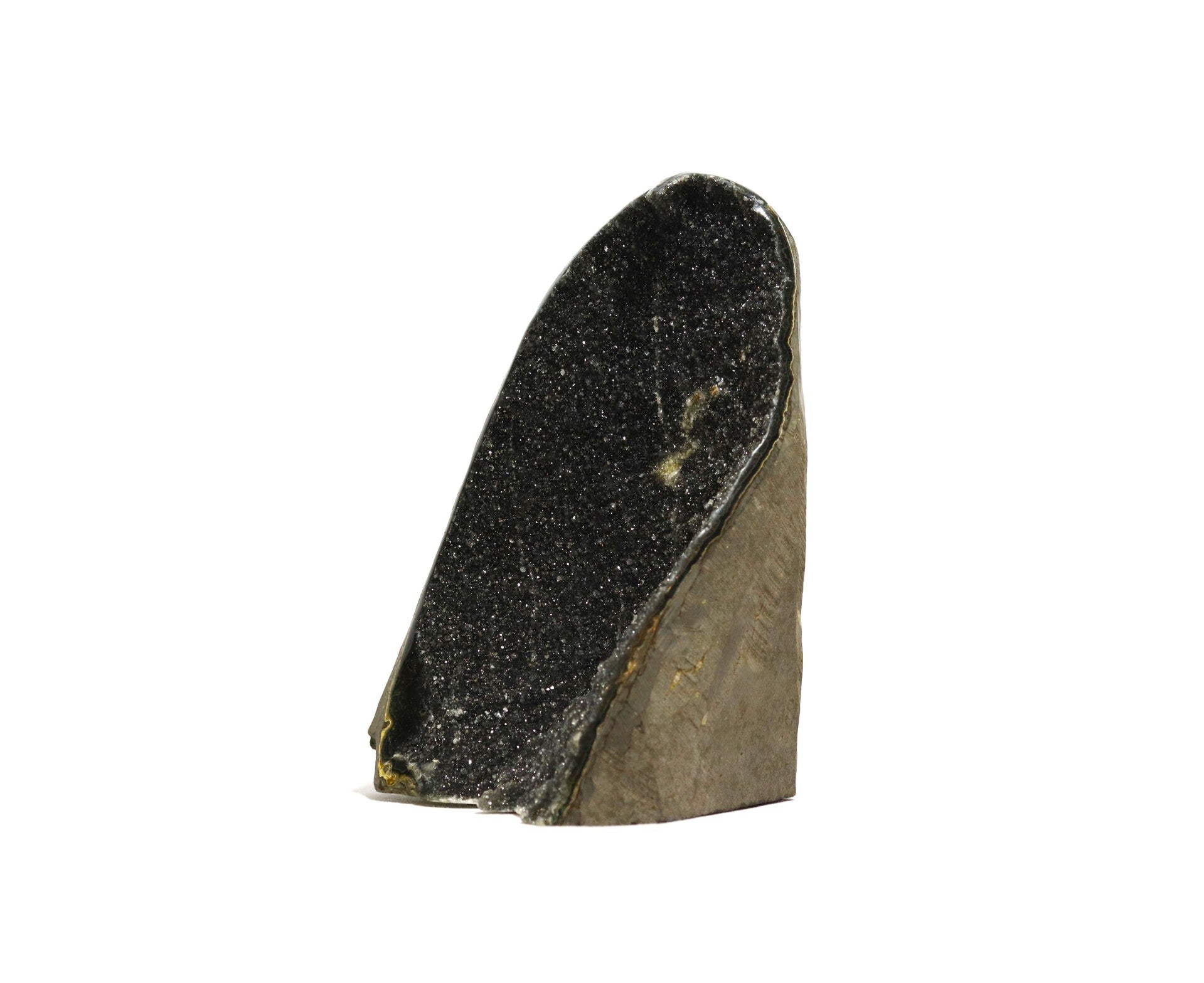 Vorming: Zwarte amethist vormt zich in geoden binnen vulkanische gesteenten, waar siliciumrijke oplossingen langzaam kristalliseren in holtes van basalt. De combinatie van ijzer en natuurlijke bestraling in deze omgeving zorgt voor de uitzonderlijk diepe kleur.
