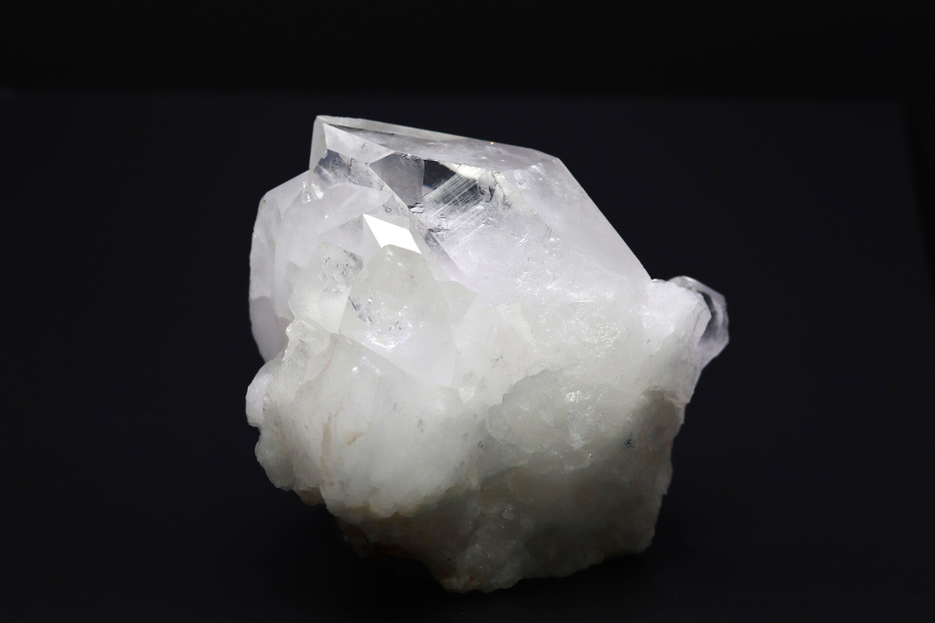 Kristalstructuur: Bergkristal heeft een hexagonale kristalstructuur, die kenmerkend is voor kwartsmineralen. De kristallen groeien vaak in prismatische vormen en kunnen lange, heldere naalden of puntige vormen aannemen.