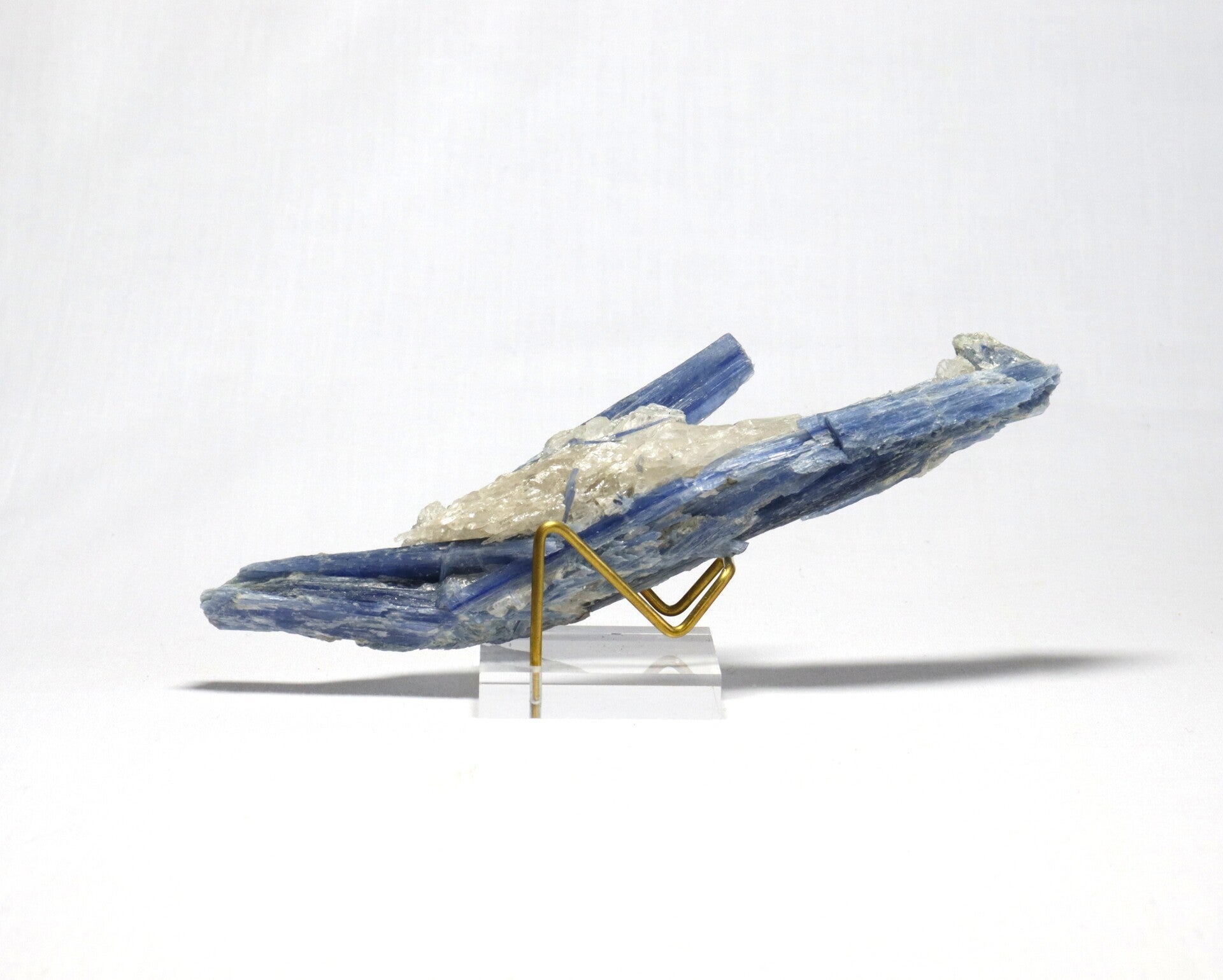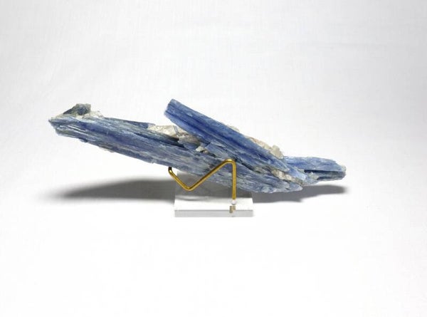 Blauwe kyaniet is een mineraal uit de aluminiumsilicaatgroep. De blauwe kleur ontstaat door de aanwezigheid van ijzer en soms titanium en het mineraal staat bekend om zijn langwerpige, bladachtige kristallen.