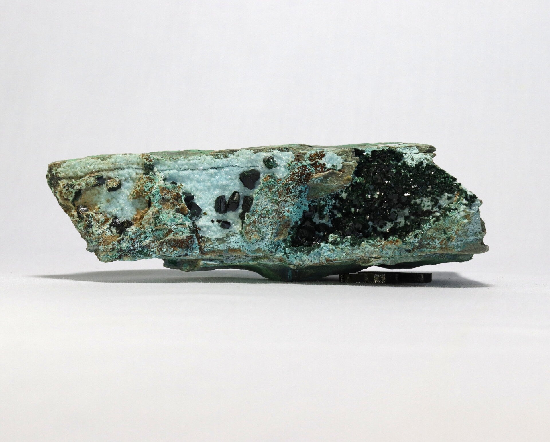 Temperatuur- en lichtgevoeligheid: Chrysocolla kan gevoelig zijn voor hoge temperaturen en plotselinge temperatuurwisselingen, wat tot barsten of kleurveranderingen kan leiden. Malachiet is gevoelig voor zuren en mechanische beschadiging, maar over het algemeen stabiel bij normaal licht en kamertemperatuur.