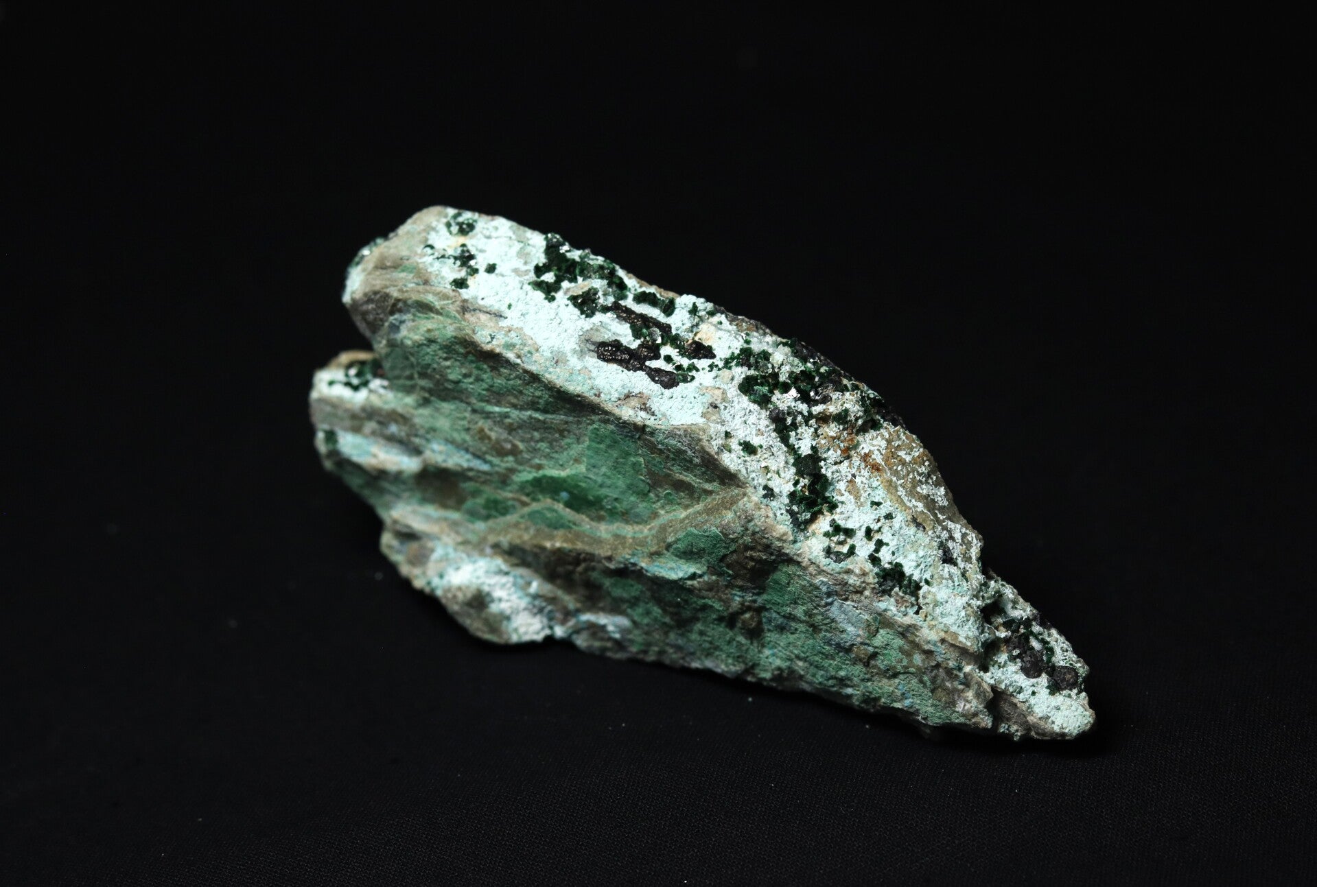 Vorming: Chrysocolla met malachiet ontstaat in de oxidatiezones van koperertsafzettingen, waar koperhoudende oplossingen reageren met silicaten en carbonaten. Malachiet vormt zich vaak eerst als primaire laag of knolvormige aggregaten, waarna chrysocolla zich afzet in scheuren, poriën of als een laag over de malachiet.
