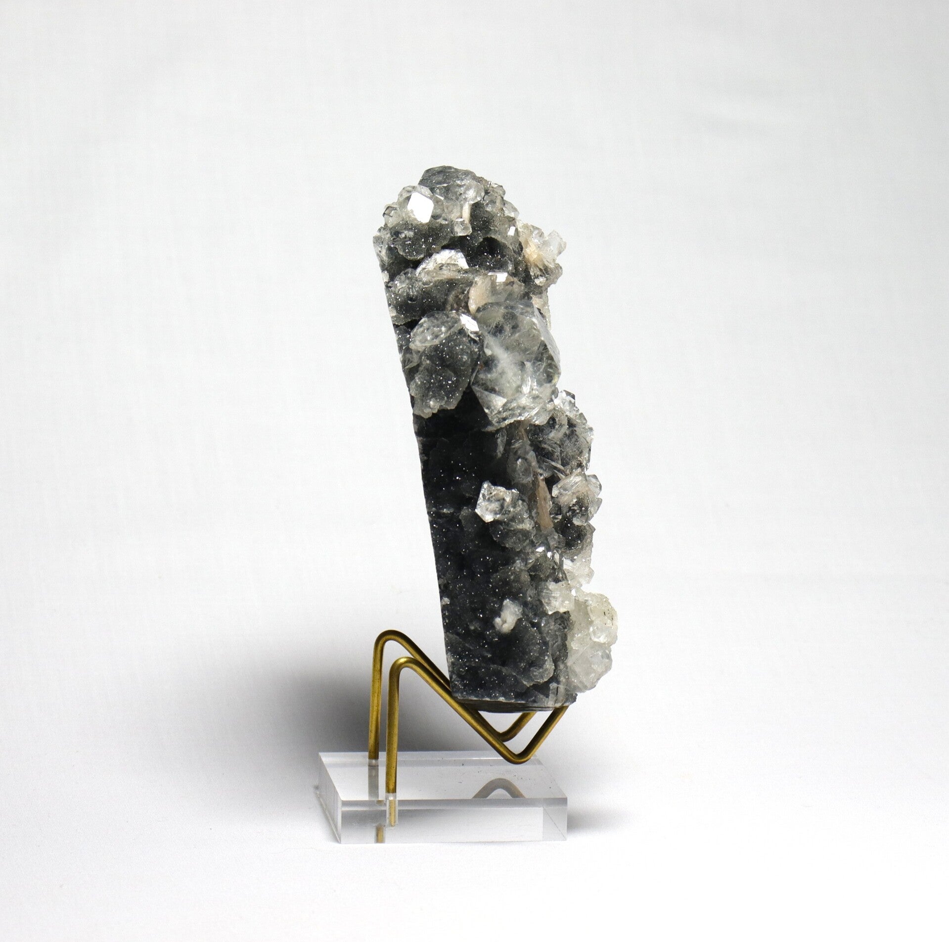 Afkomst: Dit type combinatie wordt gevonden in het basaltische Deccan Traps-gebied rond Nashik in Maharashtra, India. De regio staat bekend om haar geodes en holtes in basalt waarin mineralen zoals chalcedoon, apofylliet, stilbiet en andere zeolieten kunnen kristalliseren.